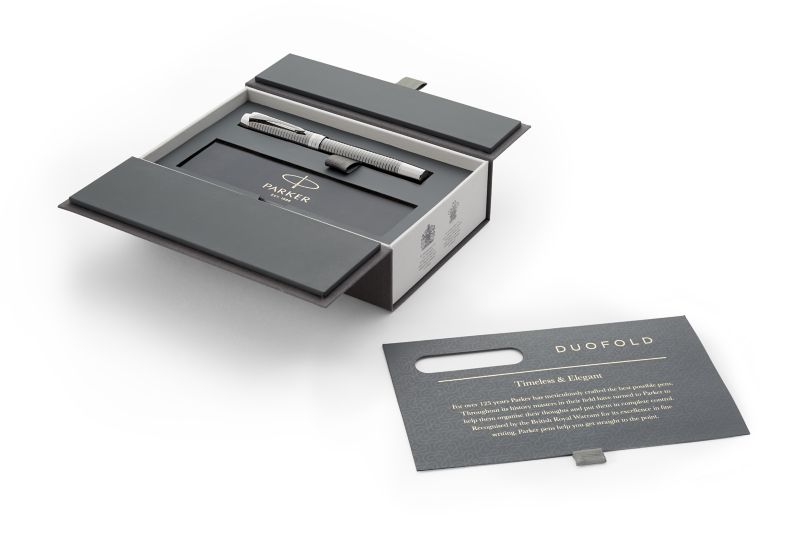Ручка роллер Parker Duofold Prestige Ruthenium Chiselled CT от официального дилера Parker в Кисловодске. Вы можете дополнительно заказать гравировку, которая подчеркнет Вашу оригинальность и придаст памятность статусному подарку. Все ручки Паркер поставляются в фирменном футляре.